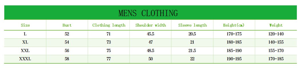 | Size | L, M, XL, XXL, XXXL |