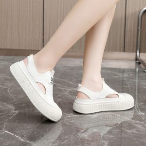 Spring and summer mesh breathable round toe solid color casual shoes increased thick sole sneakers student shoes